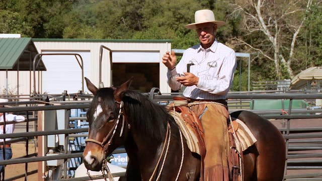 Buck uses a rider's horse to explain how to get a horse to respond to a light touch. The less you do, the more you get with only a feel.